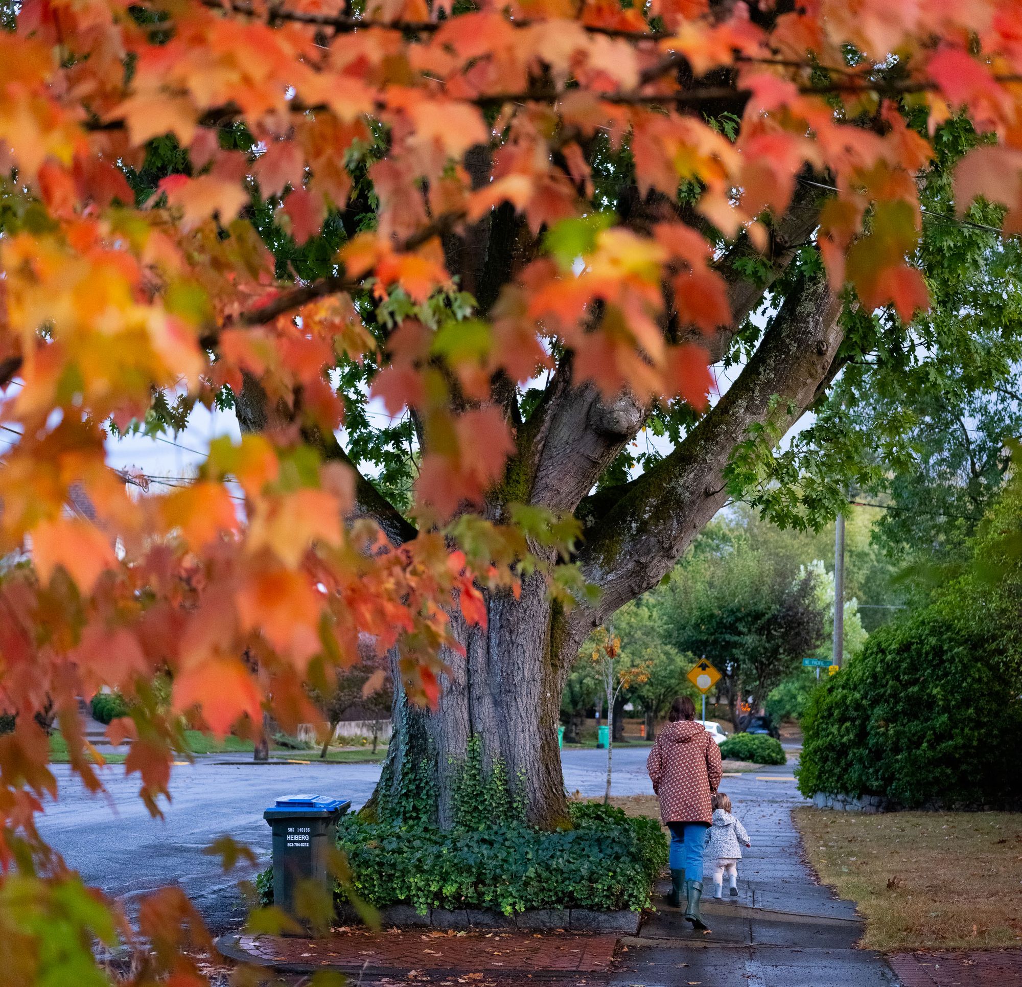 The leaves are finally their bright orange and I’m reminded of just a year ago, when you would lie in your bassinet stroller looking up, cooing at them. It was before you could point. But you were pointing. You’ve always chatted with trees, even at four months old, but now you hold their fallen leaves in your hand, knowing their magic and their stories.