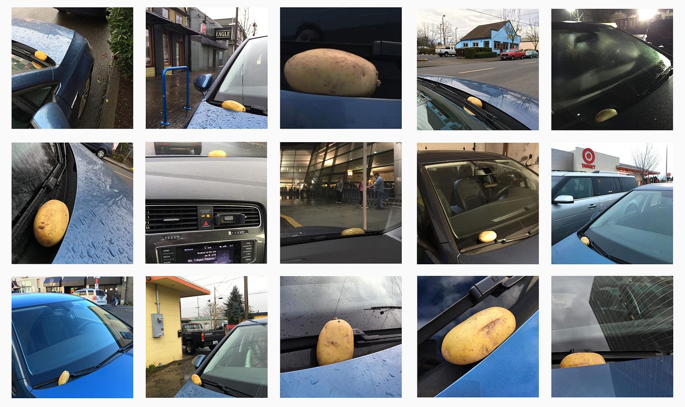 I mean, this is Portland. Putting a potato on a windshield seems like the right thing to do. And my windshield? Well, it just felt right to Brad.