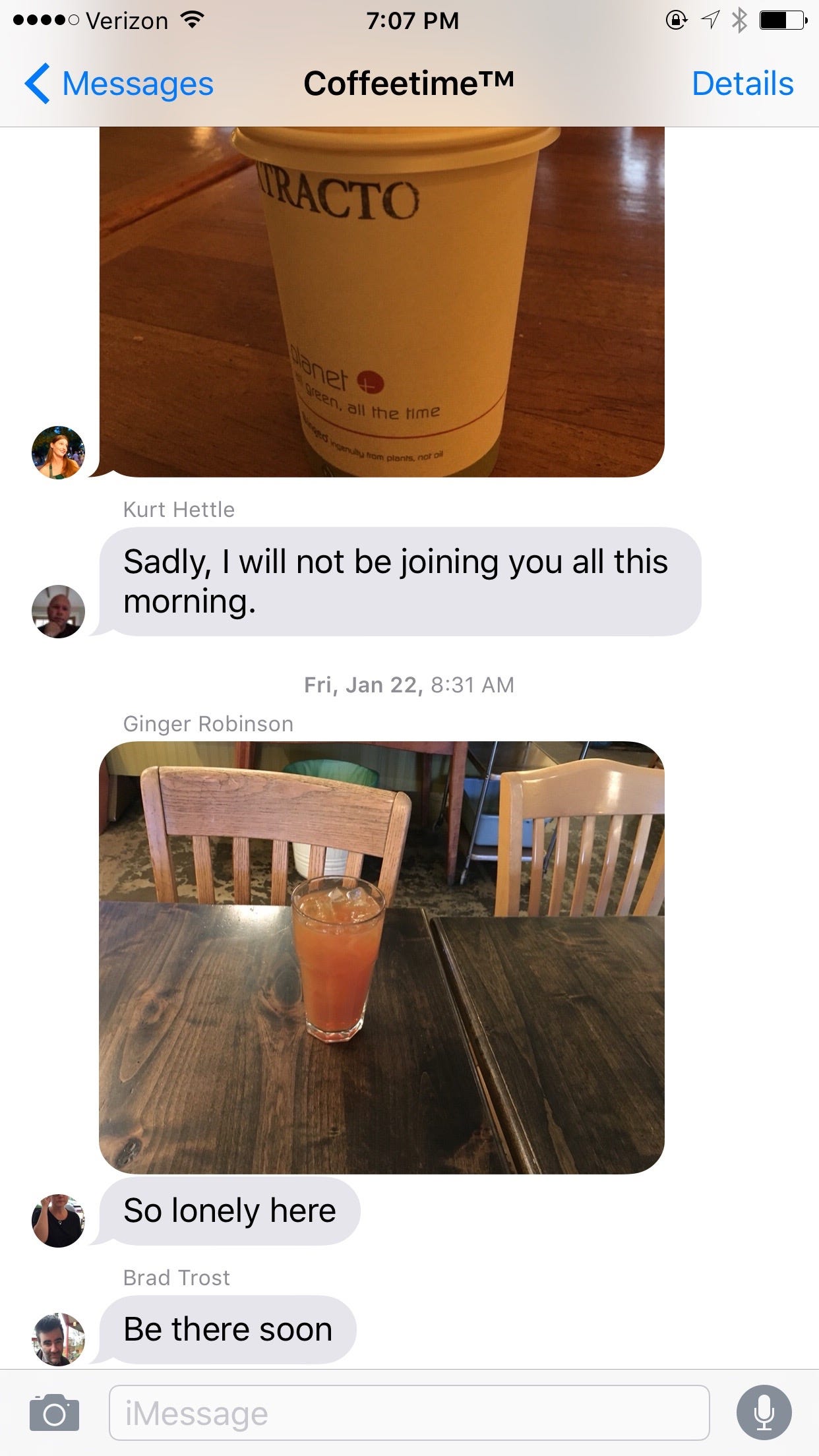 My morning ritual involves stopping at the same coffee shop every morning and having my first cup of the day with a few friends.