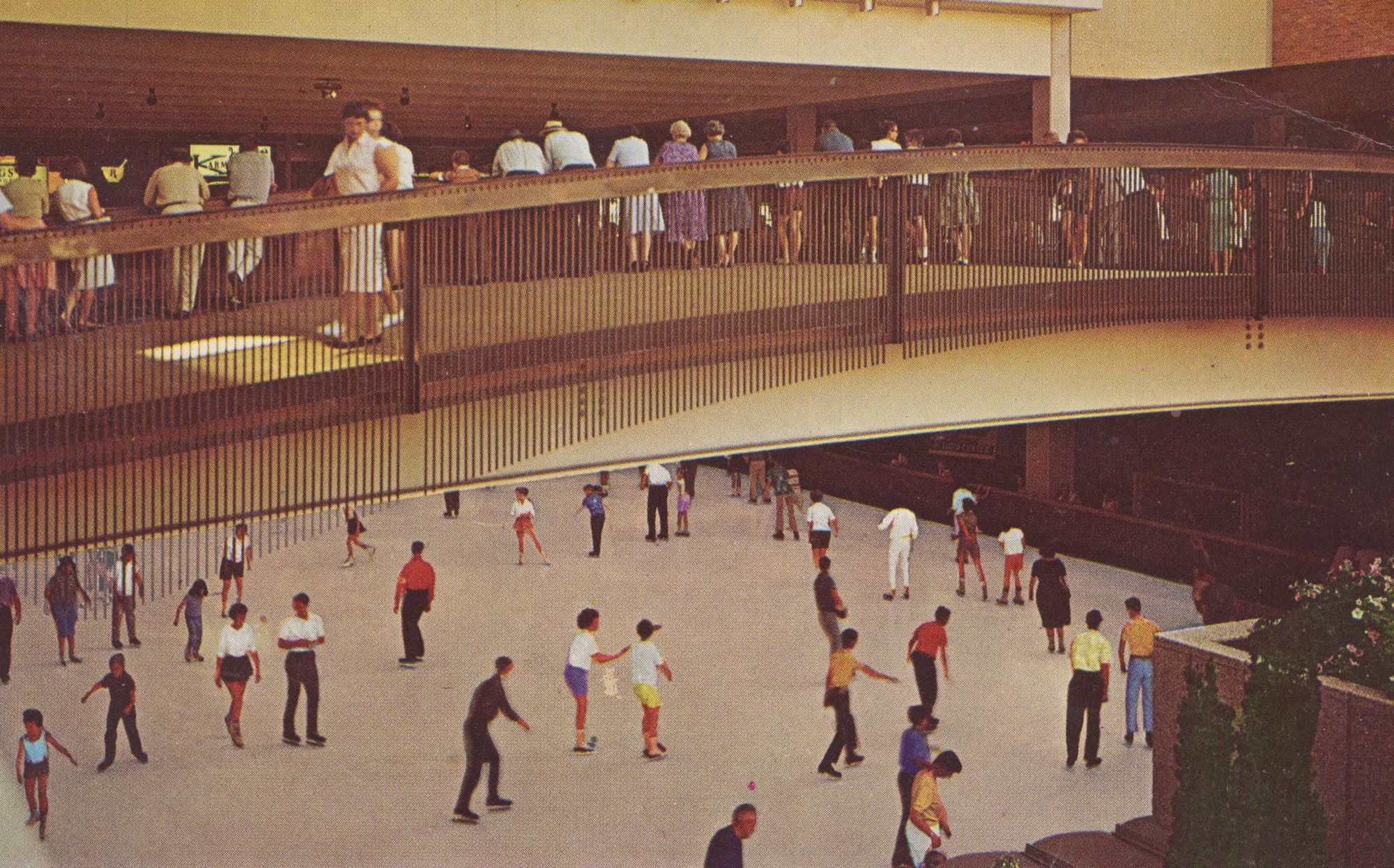 The Gordon’s Fireplace Shop looks amazing. Meir & Frank’s dining room? Holy Shit. And of course the skating rink was originally outdoors. The whole mall was outdoors. These photos are as close to time travel as we will come.